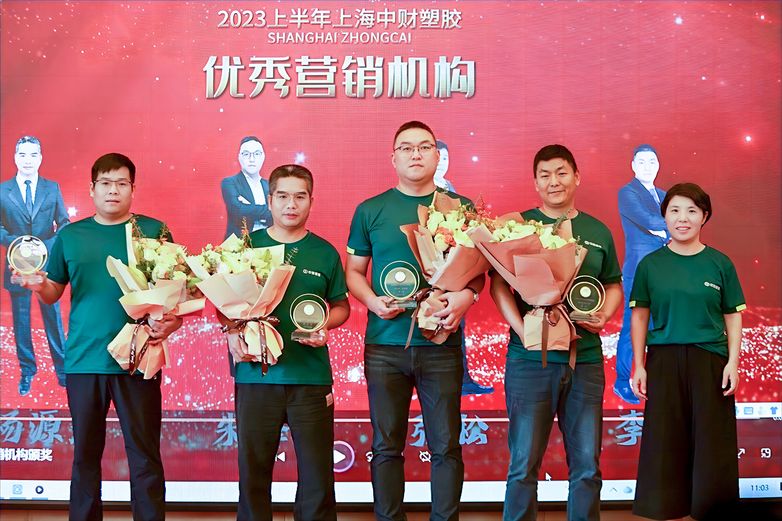 本次会议对上半年营销工作表现优异的四个机构予以表彰,他们分别是管道第七办事处经理杨源武、暖通第二代表处主任朱峰、南汇管道代表处主任张松及金山管道代表处主任李良。丁总为获奖者颁奖。获奖代表杨源武、朱峰上台发表获奖感言。