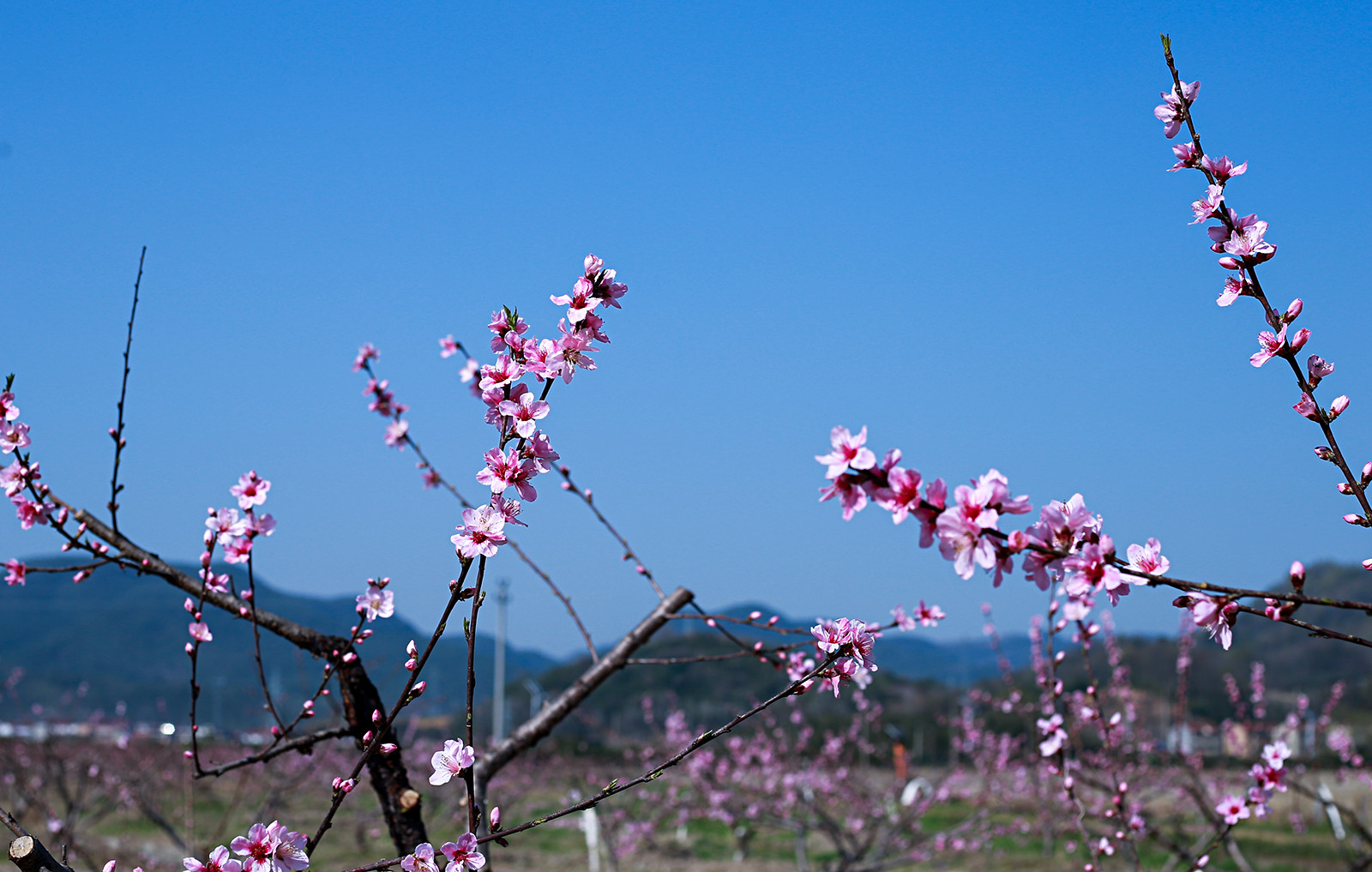 (蜿蜒小路边桃园一景)