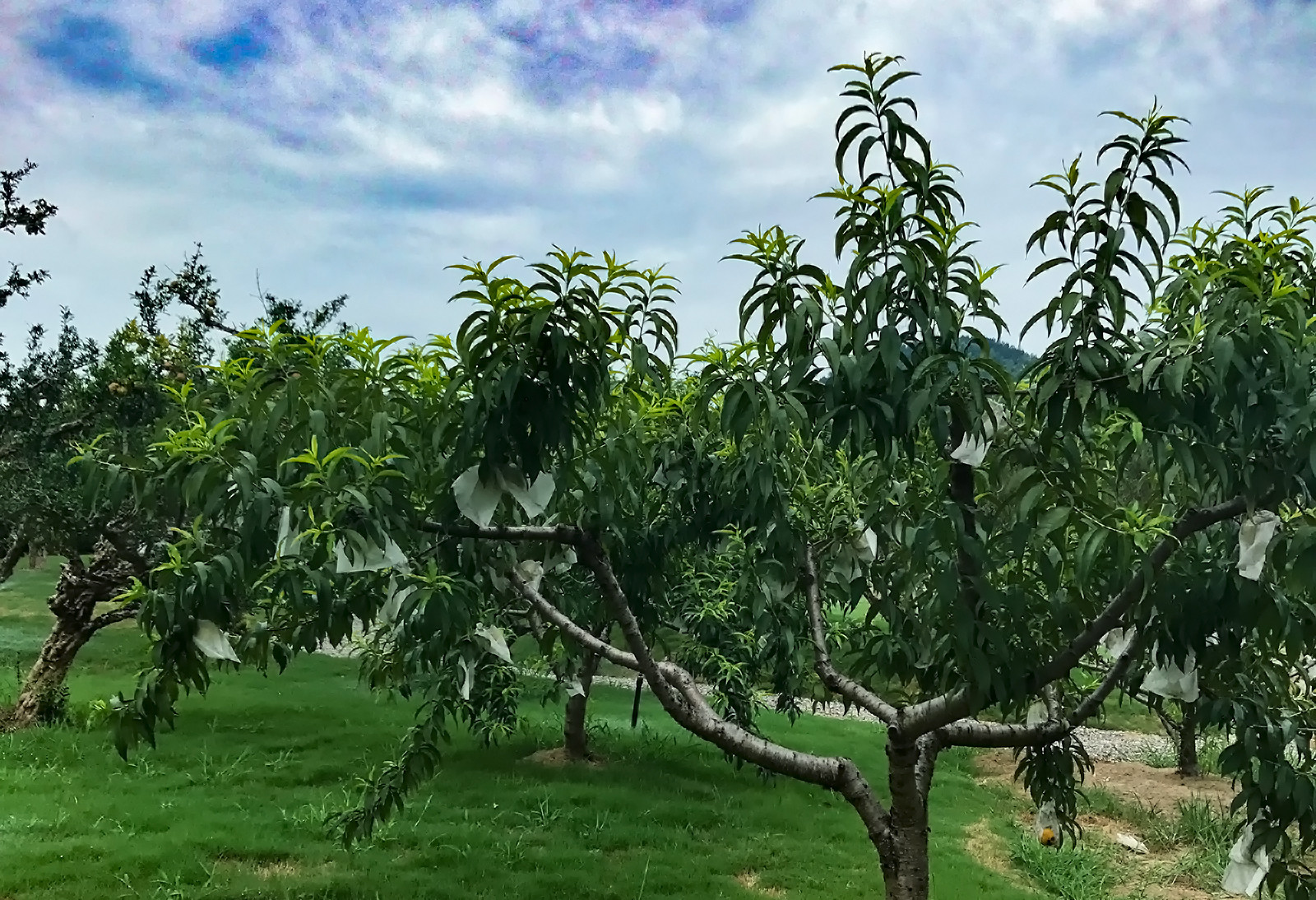 3月桃花盛开,待果树上结出一颗颗青翠欲滴的娇嫩果实,幼黄桃就被果农贴心用塑料网套包裹,防止黄桃生长期间被鸟类啄食和蚊虫叮咬。