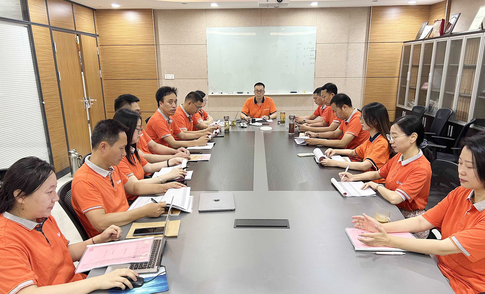 会议首先由综合管理科科长胡金英带领大家学习2023年半年度营销会议纪要,由结算科科长赵文雯做2023年7月份销售数据通报。