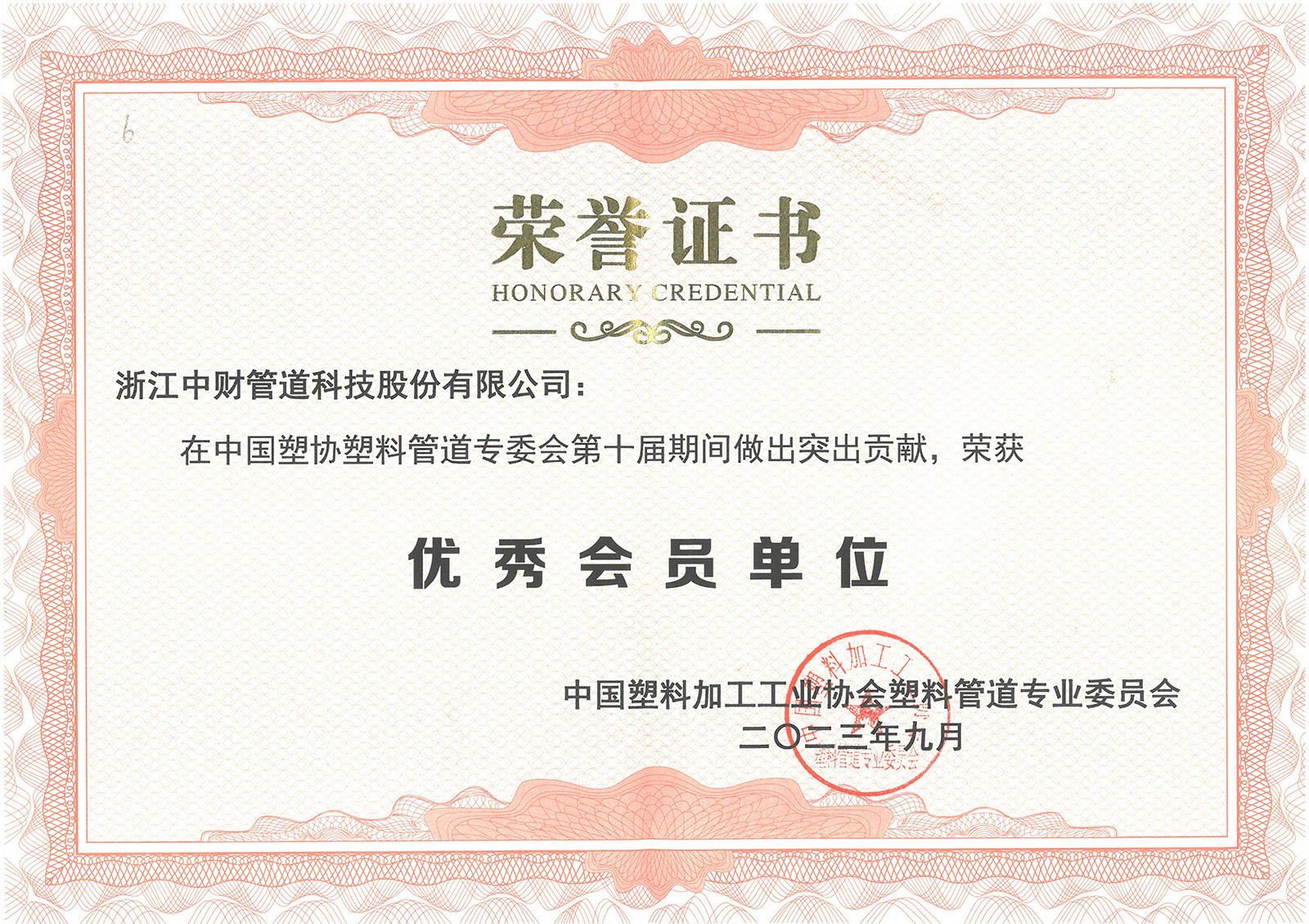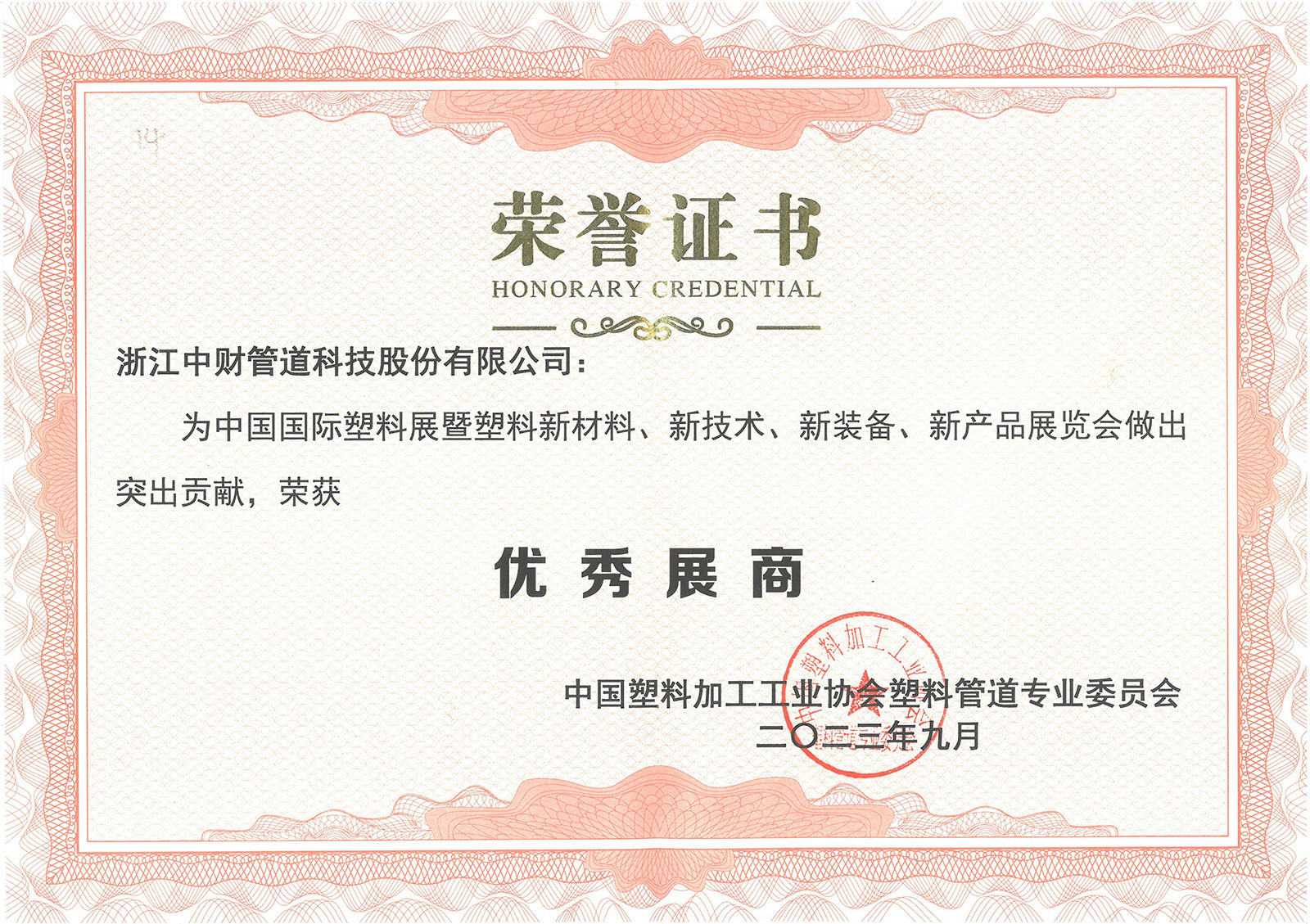会议期间,协会就中国塑料管道专委会第十届期间作出突出贡献的企业进行了表彰,公司荣获“优秀会员单位”、“优秀展商”荣誉称号。