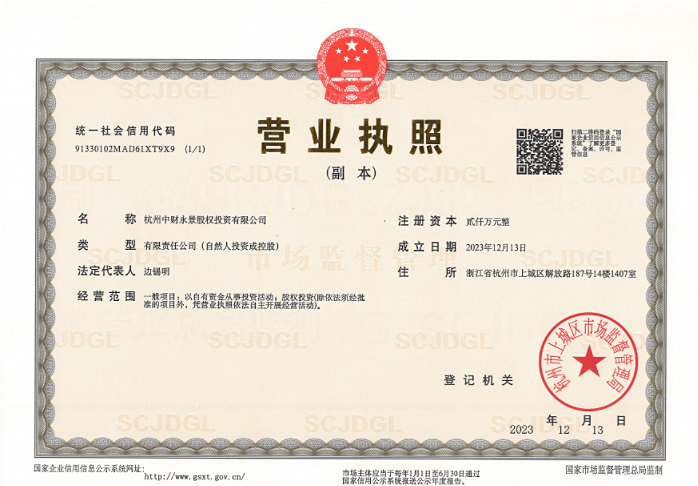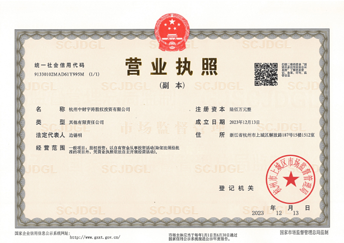 乐鱼网页版登录入口讯 根据乐鱼网页版登录入口董局字[Ⅷ]第6号之文件精神,为进一步壮大乐鱼网页版登录入口投资事业,全面构建乐鱼网页版登录入口投资十一条大街,在集团首席投资官、集团常务副总裁、集团执行总裁(资本)的组织筹建及各级领导的通力支持下,杭州乐鱼网页版登录入口永景股权投资有限公司、杭州乐鱼网页版登录入口宇涛股权投资有限公司,已于2023年12月14日领取营业执照,正式成立。