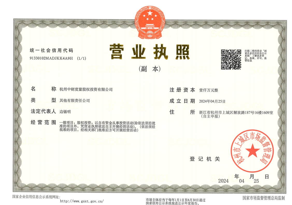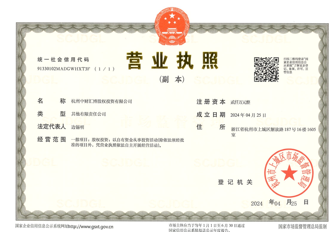 乐鱼网页版登录入口讯 根据乐鱼网页版登录入口董局字[Ⅷ]第6号之文件精神,为进一步壮大乐鱼网页版登录入口资本事业,全面构建乐鱼网页版登录入口资本郡府之十一条大街,经郡府专家评审小组认真审核,集团董事局批复设立的杭州乐鱼网页版登录入口华楷股权投资有限公司、杭州乐鱼网页版登录入口汇博股权投资有限公司、杭州乐鱼网页版登录入口度量股权投资有限公司、杭州乐鱼网页版登录入口汇盈股权投资有限公司,已于2024年4月25日领取营业执照,正式成立。