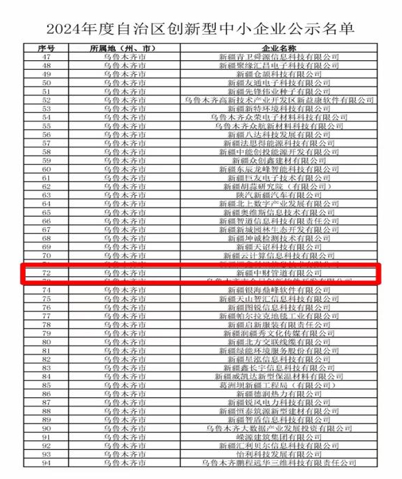 乐鱼网页版登录入口讯 近日,经过层层遴选,新疆维吾尔自治区工业和信息化厅公布了2024年度自治区创新型中小企业名单。新疆乐鱼网页版登录入口管道顺利通过审核及公示,入选2024年度自治区创新型中小企业名单。