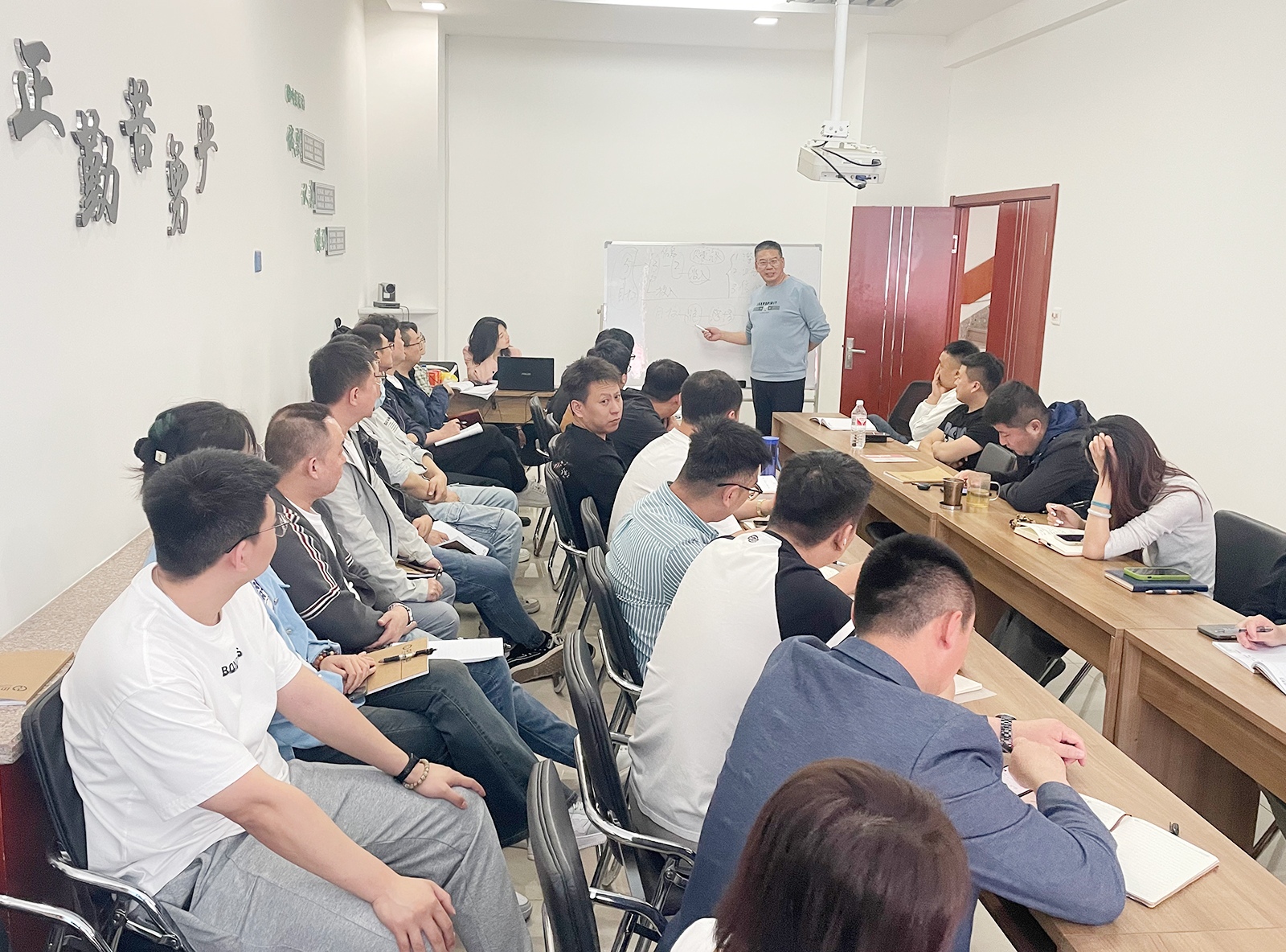 上午9时,实战营启动大会在广角二楼会议室准时召开,哈尔滨广角全员、安徽保理杨总及市场部成员共同参会。首先杨总在会上发表讲话,给全体员工分享了一些经历和跑动心得,并指出目前哈尔滨广角区域上市公司未成功营销的问题所在,最后讲解了独特的业务营销模式,助力全员业务营销水平提高。