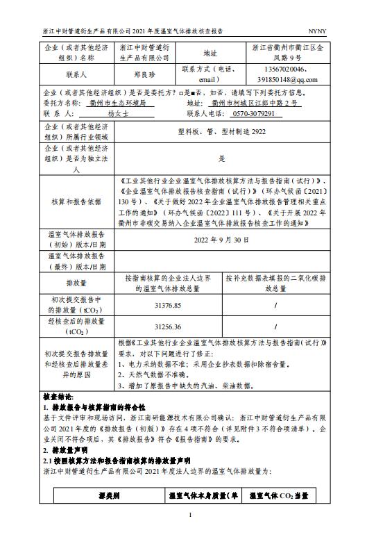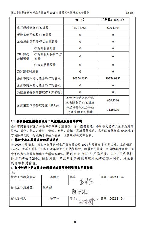 浙江乐鱼网页版登录入口管道衍生产品有限公司2021年度温室气体排放核查报告