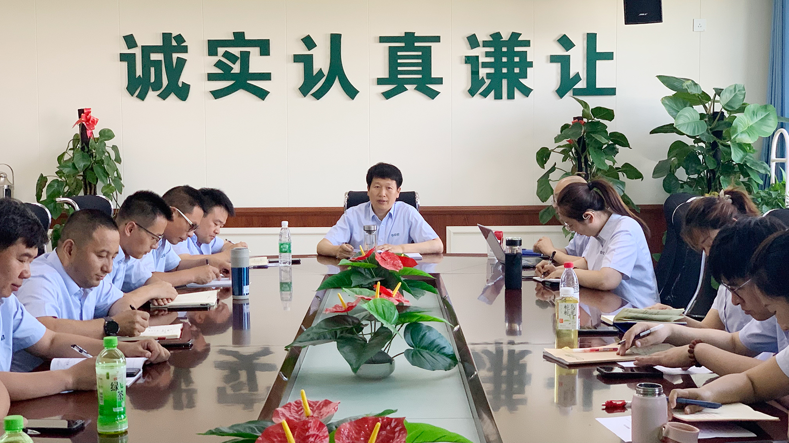 其次,由财务监管、企管内控、产销服务、技术服务及安全管理五个区块负责人进行了月度重点工作情况汇报,且由各专项负责人对专题分析报告进行分析汇报,其间领导班子对报告进行点评并提出了需要重点关注的问题。