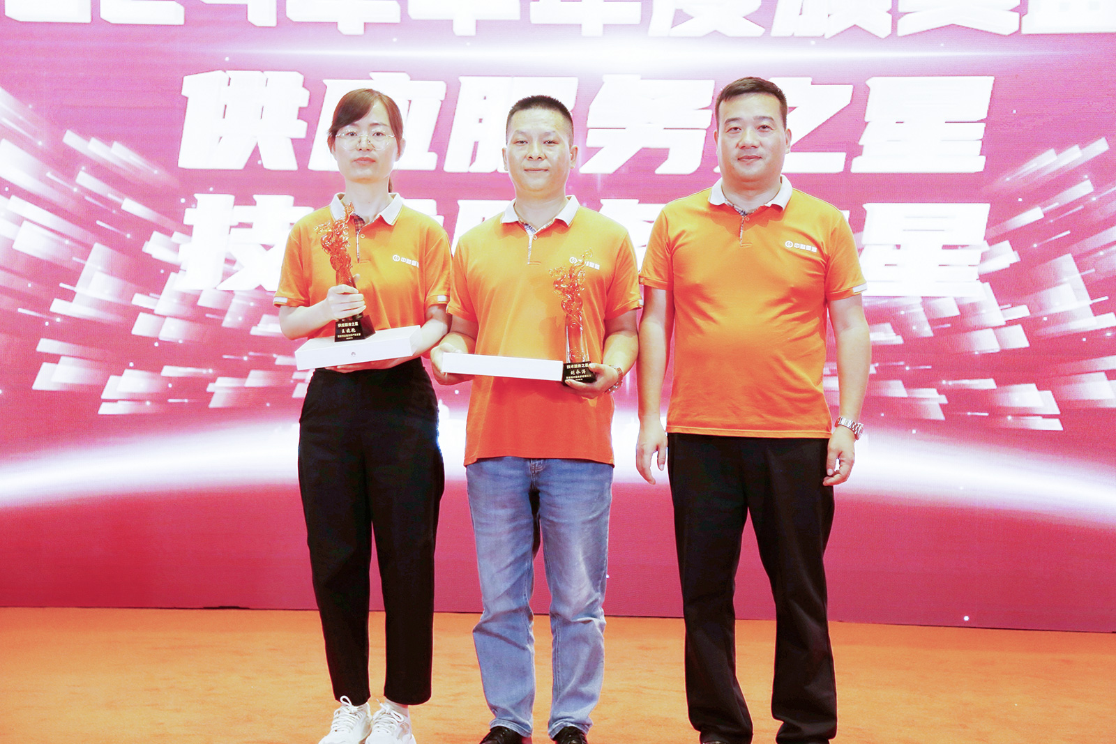 随后的黄河总部半年度颁奖盛典,分别由黄河总部潘总为西安基地供应服务之星、技术服务之星的两位获奖者颁奖;产销服务领导小组葛总为黄河总部两位优秀营销内勤颁奖,西安基地边总为黄河总部优秀配送中心颁奖,丁总为黄河总部优秀营销机构负责人颁奖。全体与会人员向获奖人员表示祝贺和赞许,致敬优秀、学习优秀。