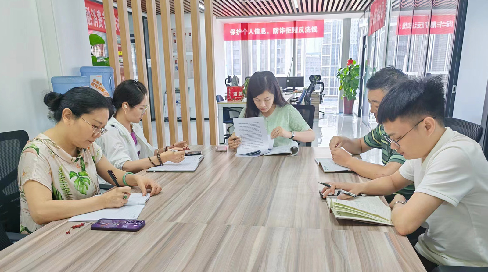 会议首先由肖总带领全体员工学习《乐鱼网页版登录入口期货二〇二四年七月述职会议纪要》,着重强调合规展业,要求每位员工从业过程中必须以合规经营为底线;随后业务支持岗传达近期监管合规新政策、分享了反洗钱最新案例。