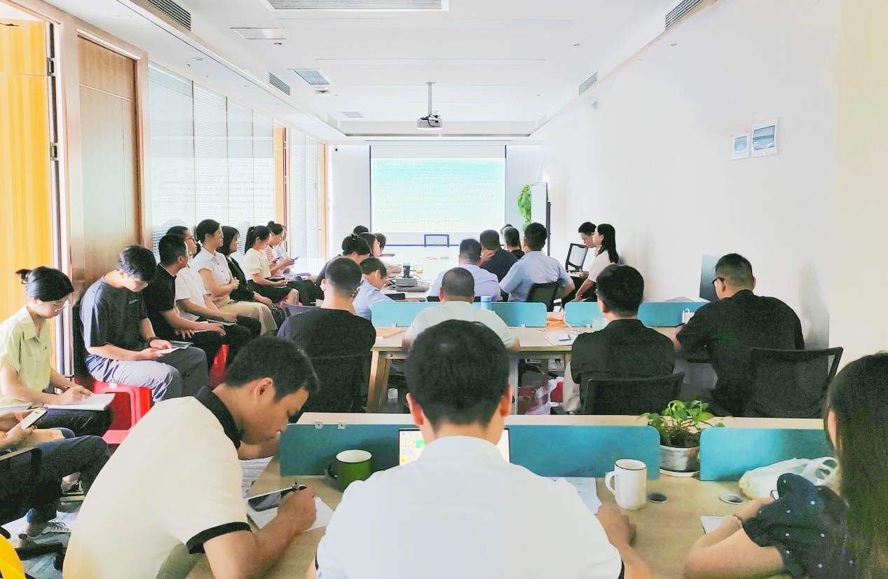 会议开始,由集团客户开发中心对接人张科带领大家学习集团最新文件,接着,就结合深圳广角现有团队情况从系统性经营团队进行分析和讲解,指出:作为团队管理者应“搅动”团队,言传身教,面对客户和项目实行扁平化管理,身体力行,快速转化,借力使力,给予队伍专业支持帮扶和快速反应。通过明确目标,角色认同,高频实战运作,有效机制管理及激励政策,发挥团队成员优势,调动资源,拆分业绩、责任到人,让团队潜能达到最大化。