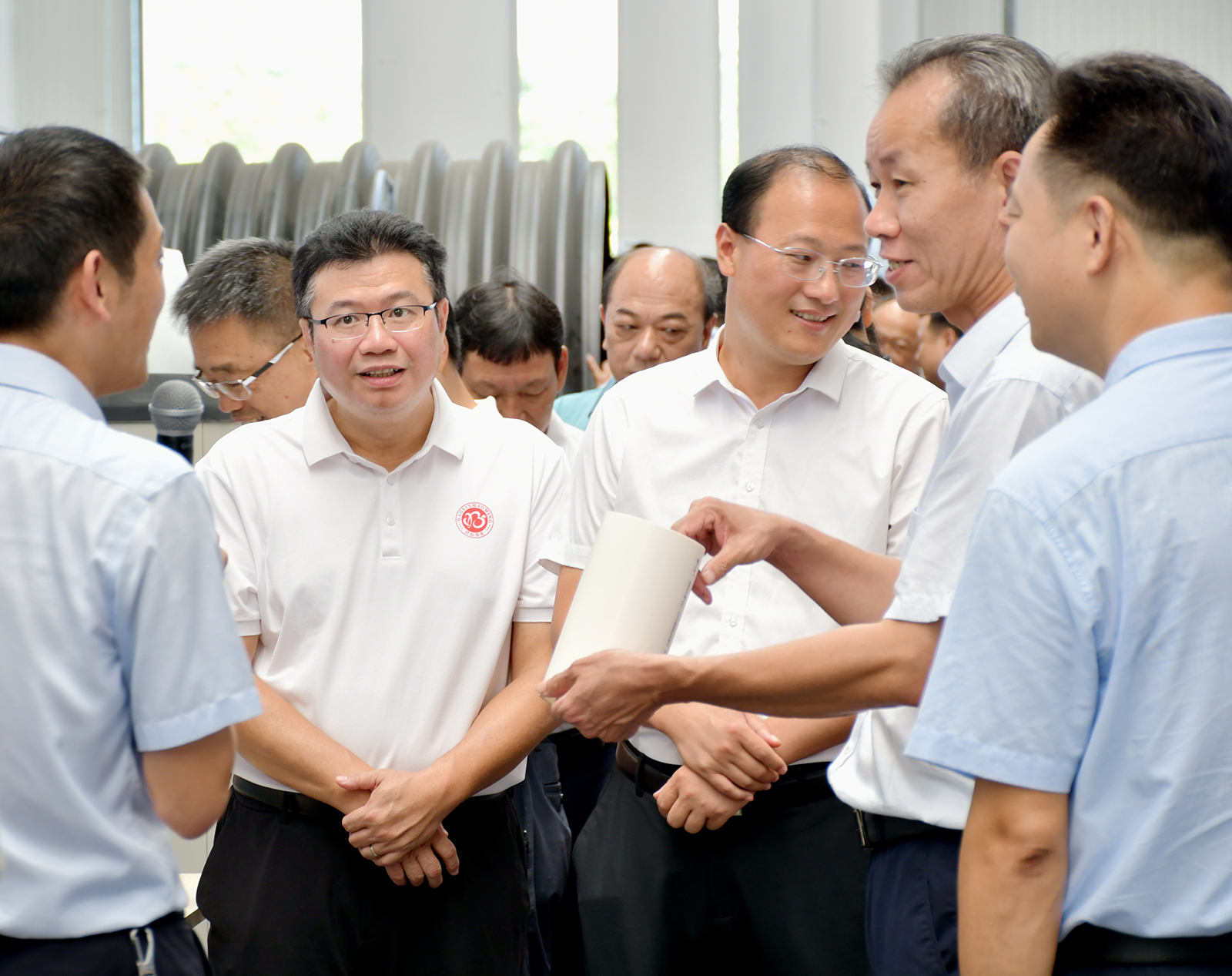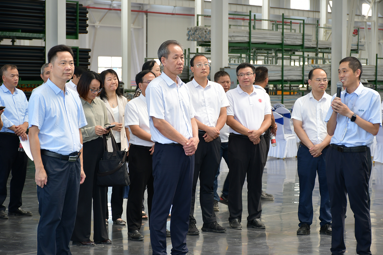 市委书记王土瑞一行参观了公司生产车间,公司负责人刘亚鹏就目前项目建设情况、未来发展规划、产品应用等方面进行了详细介绍。王书记一行对公司的建设进度、发展规划及产品创新性表示充分肯定,希望能加快项目基建进度,争取早日全线投产,助力高州工业发展。