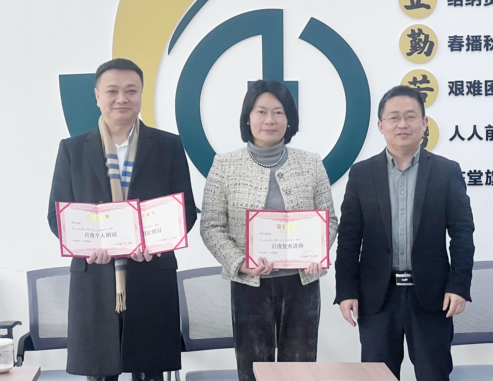 会议最后,张总为广角十一月个人业绩销冠,团队业绩销冠,以及月度优秀讲师进行了颁奖,并鼓励大家以此为榜样,勇创佳绩。