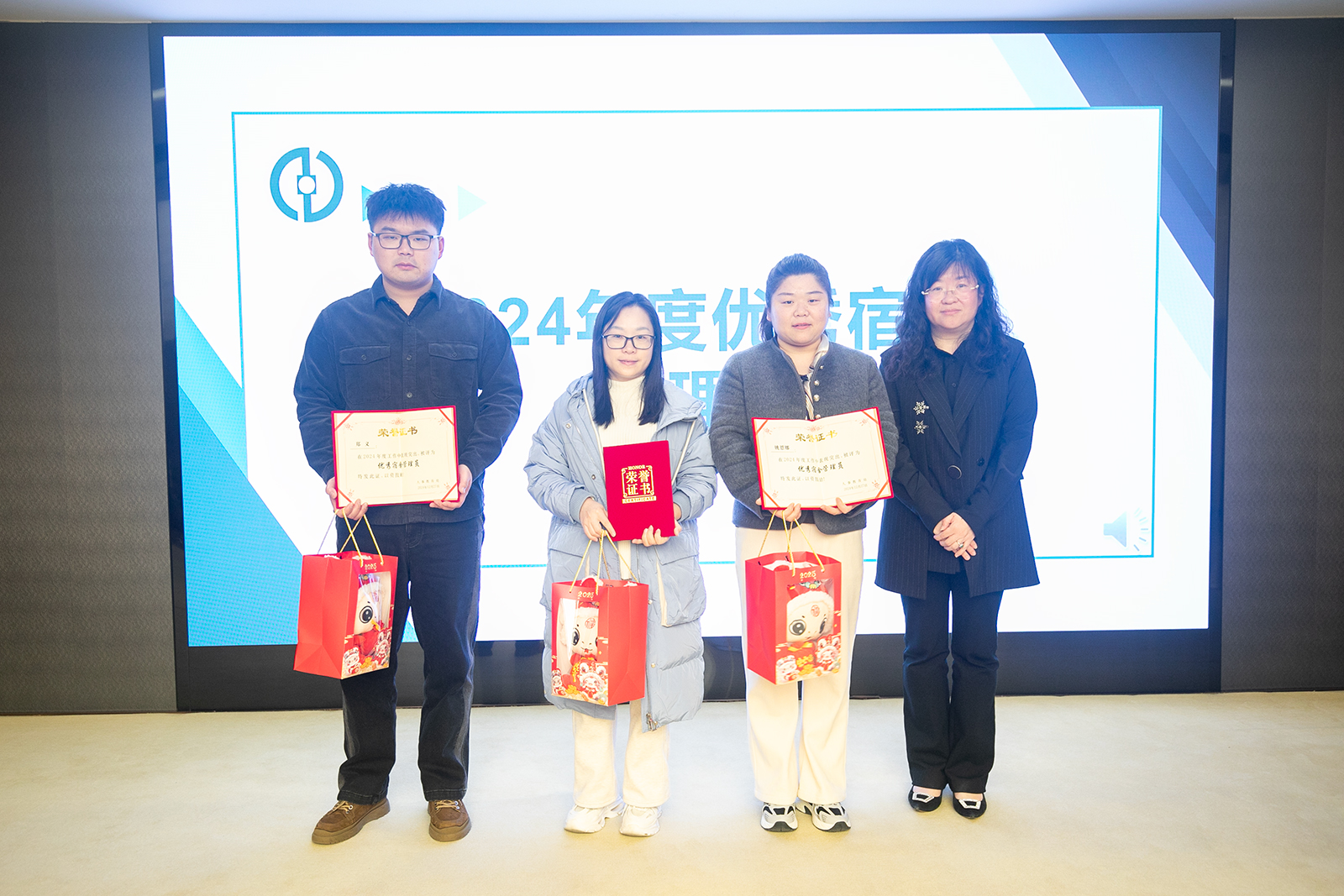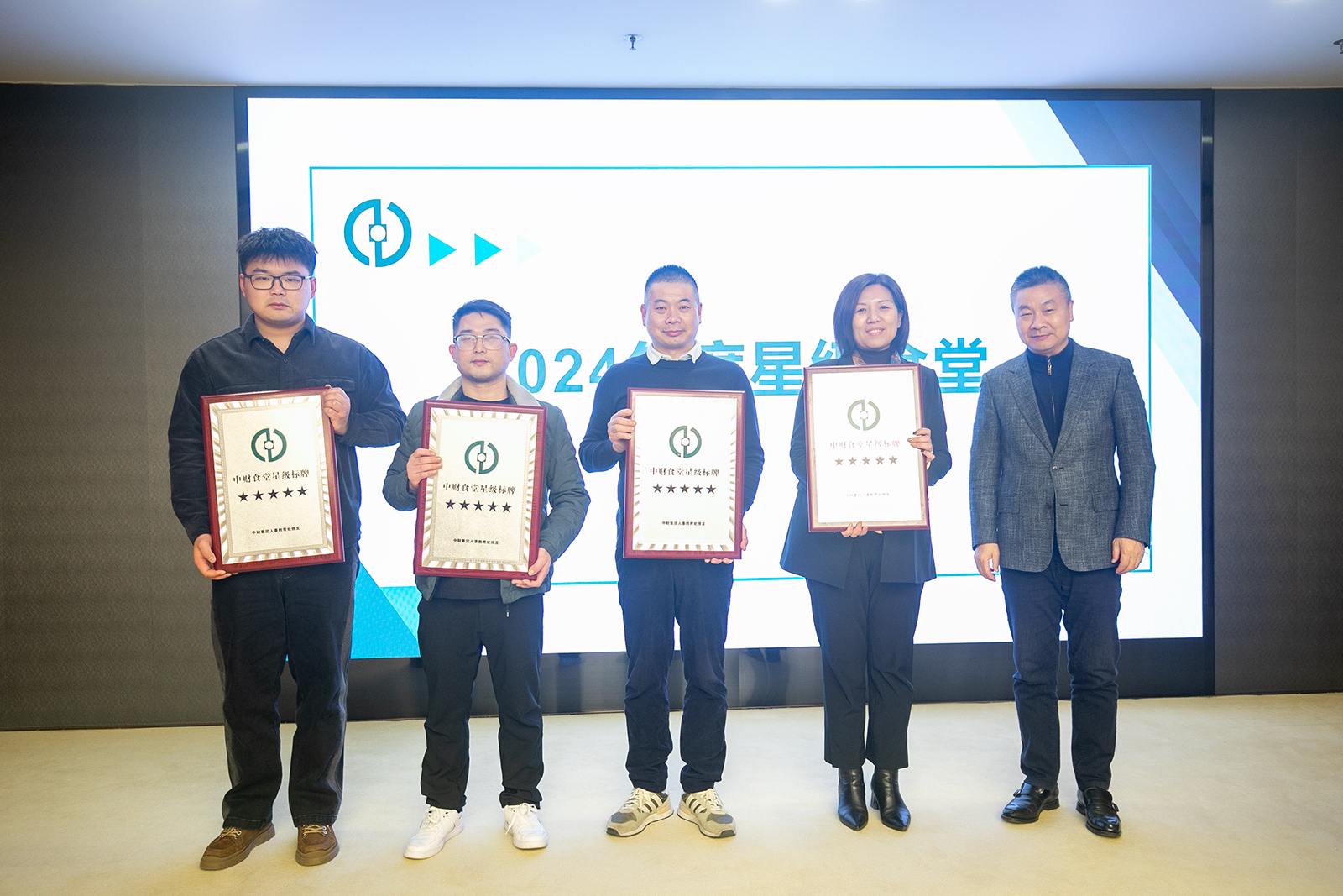 在总结表彰环节,集团行政总裁(联席)张总、人事教育处处长韩宁、副处长单纯作为颁奖嘉宾,分别为2024年度优秀员工、星级宿舍、优秀宿舍管理员、星级食堂、优秀食堂管理员、厨艺比拼优胜奖得主颁奖。