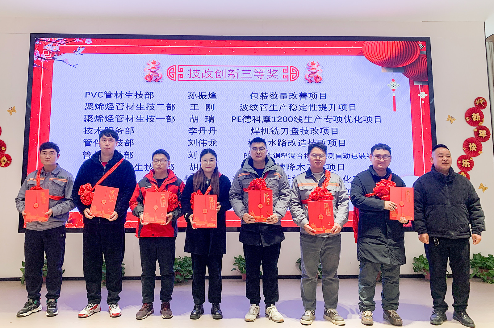 旧年的辉煌篇章在岁月长河中镌刻下深深印记,新春的希望旋律于时光新篇里奏响激昂乐章;本次表彰大会主要由颁奖盛典、优秀员工代表发言、领导致辞、合影留念四个环节组成,其中颁奖盛典隆重表彰了在过去一年里开拓进取、勇攀高峰的先进代表和优秀团队,主要包含优秀员工、优秀之星、创新奖、先进班组、先进团队共计114位员工。