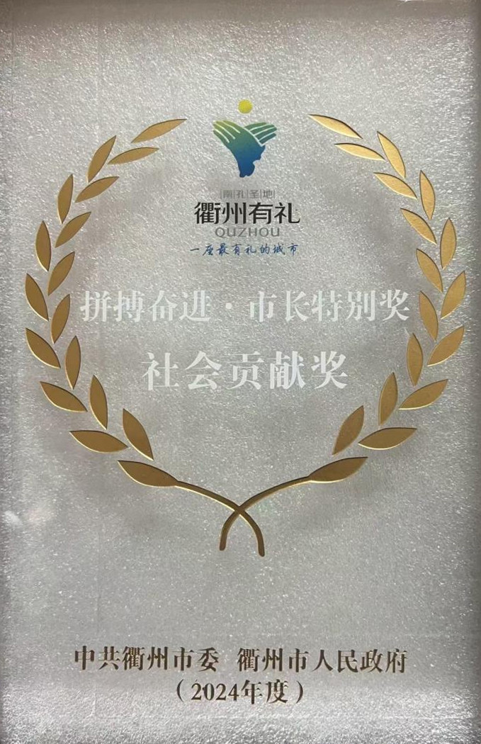 衢州市长特别奖社会贡献奖作为市级重要荣誉,旨在表彰在社会公益、经济发展、环境保护等领域作出突出贡献的企事业单位。获此殊荣是对公司多年来扎根衢州、服务地方经济发展的充分肯定,公司将以此次表彰为契机,深化技术创新,为衢州高质量发展注入更多智慧与力量。