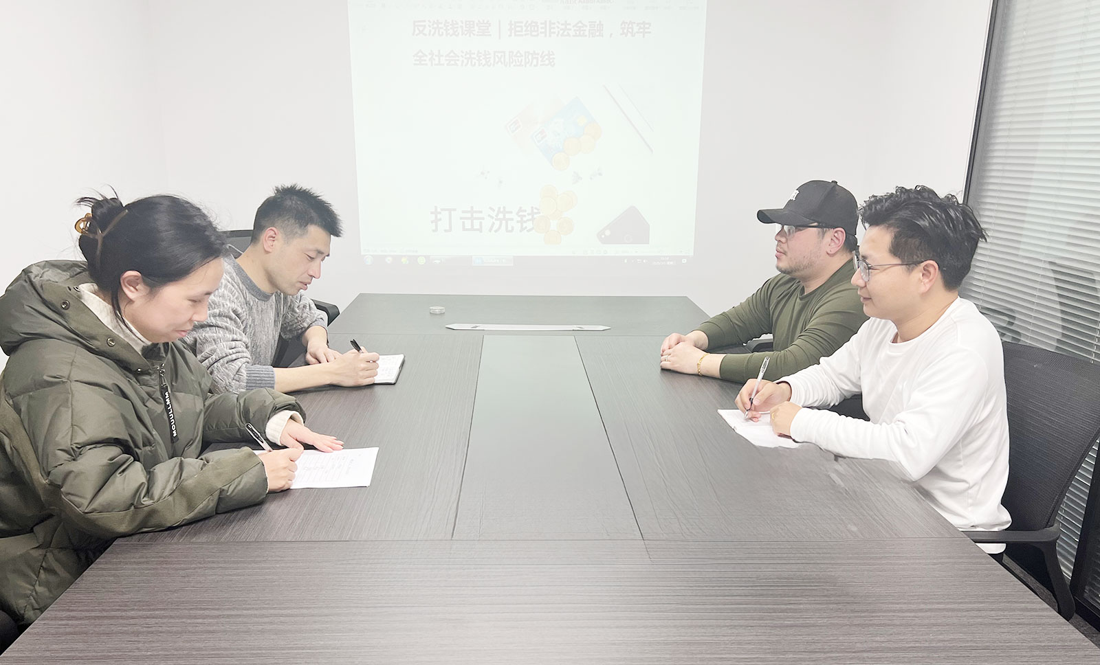 随后,魏菲宣读总部月度重要发文,带领全员学习最新反洗钱法,并对每月下发的手续费表进行详细讲解。孙文娟则对投资咨询交流群中的学习内容进行分享总结。