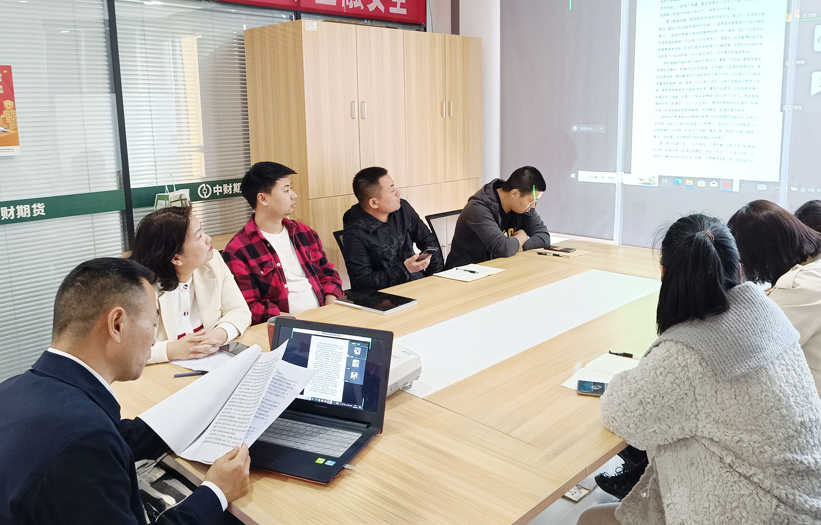 本次会议首先由牛总带领全体员工学习《乐鱼网页版登录入口期货业二〇二五年三月份述职会议纪要》。其次,学习优秀案例(上市公司开发、产业客户开发、会议营销等)。再次,王卫萍进行适当性培训(含开户、特殊品种、法人开户等)。最后,分公司每位员工分享各自跑动情况,针对近期业务进行汇报讨论。