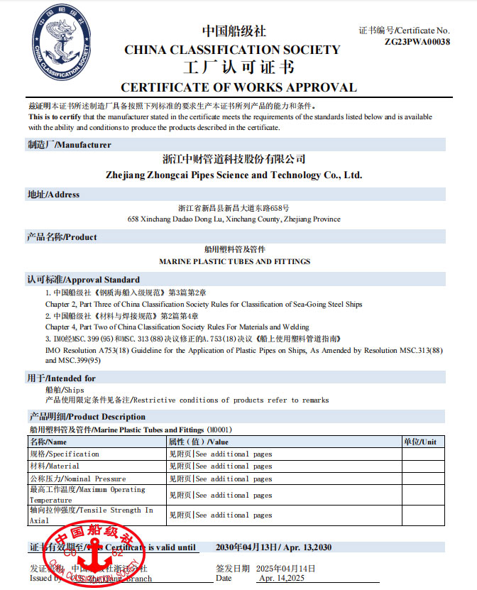 乐鱼网页版登录入口讯 近日,浙江乐鱼网页版登录入口管道成功通过中国船级社严格审核,获得工厂认可证书,标志着公司在船舶用塑料管及管件制造领域的技术水平和生产能力得到了权威机构的认可。