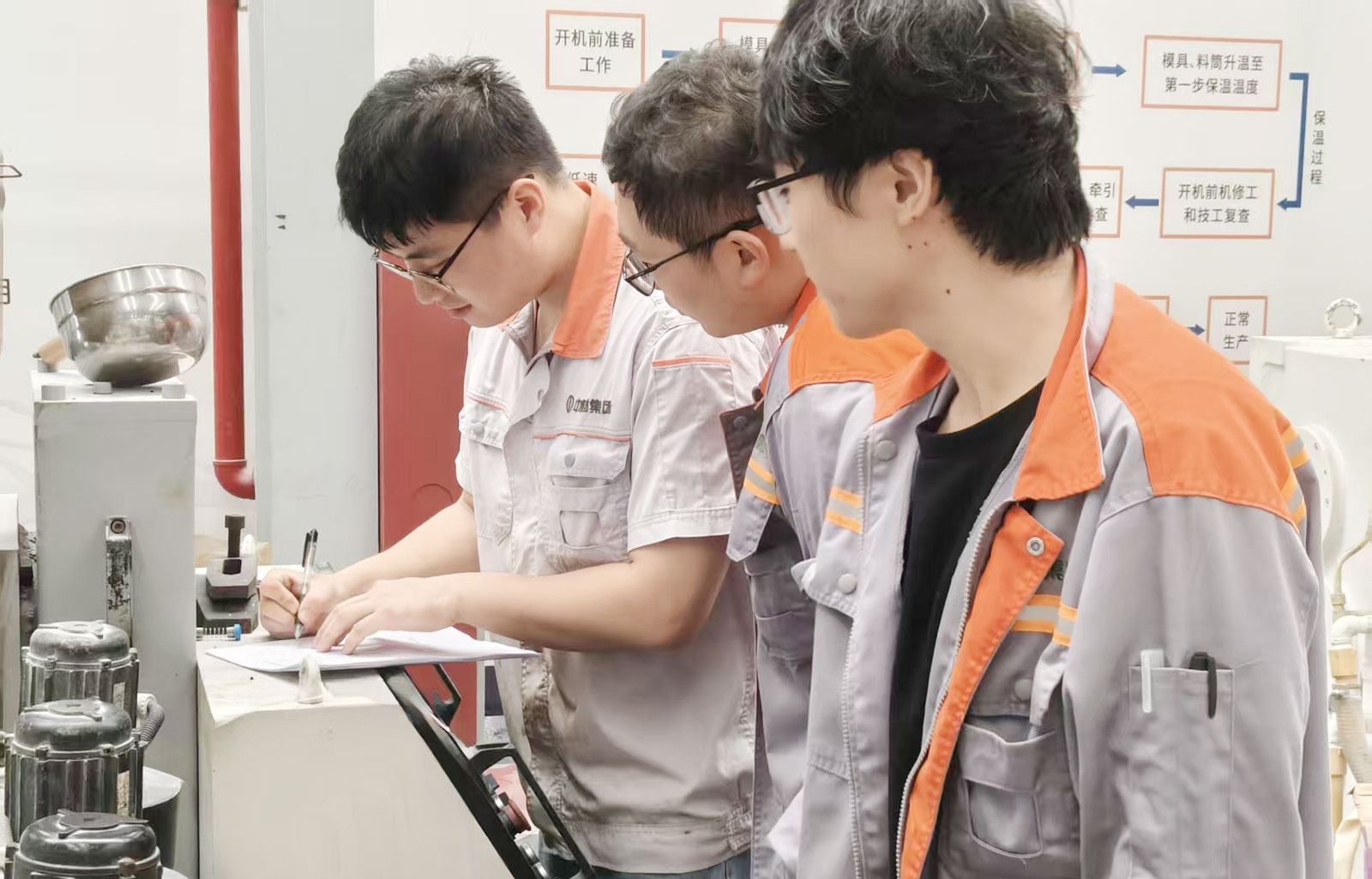 次日,挤出机开机考核在研究院试制车间挤出区展开。与注塑机考核一样,此次挤出机开机考核同样对技术人员的专业知识和实操技能提出了高要求。从设备预热到螺杆启动,从物料输送到产品成型,每一个环节都考验着技术人员的功底。参考人员沉着应对,展现出扎实的专业素养和丰富的实践经验。