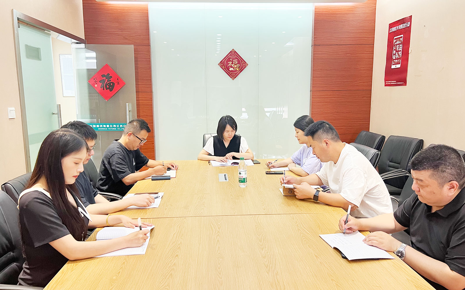 会议首先由王总带领大家学习《乐鱼网页版登录入口期货二〇二五年五月述职会议纪要》,传达领导指示,交流公司业务进展及方向。
