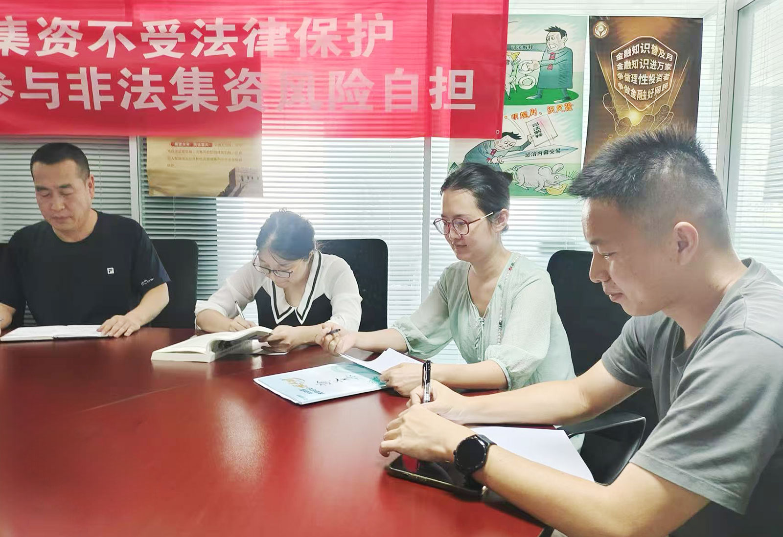 最后由毛总带领大家学习了总公司月度会议纪要内容,毛总强调在监管新规下公司将逐步取消居间业务,大家要强化内控和标准,对自身提出更高的要求。坚守合格底线,专注自我超越,实现业绩增长。