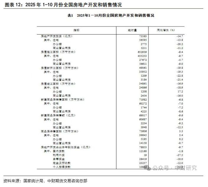 房地产市场延续调整态势,传统“金九银十”旺季效应不及预期,房企销售业绩再度承压。克而瑞数据显示,10月百强房企实现销售操盘金额同比跌幅高达41.9%。从全年表现看,中指研究院统计的百强房企前10月销售总额为28967.1亿元,同比下降16.3%,降幅较1-9月扩大4.1个百分点。行业整体规模缩水态势明显,尚未出现明确筑底信号。头部房企纷纷在物业、长租公寓、产业地产等多元领域加大投入,通过业务结构优化增强抗风险能力。当前楼市尚未筑底,但产品升级与多元化探索已成为行业转型的明确方向,随着“十五五”规划提出的住房消费限制性措施清理政策落地预期增强,房地产市场。