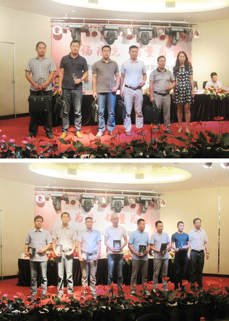 紧接着进行的是大会最激动人心的颁奖议程。首先是钱总根据乐鱼网页版登录入口化建字【2014】第107号、118号奖励文件,对获得集团公司上半年度各类奖项情况进行通报,并邀请获奖者上台与李总、钱总合影留念。随后根据营销机构上半年的销售数据以及各级机构的综合表现,钱总宣布了优秀营销机构奖、奖集采贡献奖、优秀新人奖及产品单项奖四大奖项获奖者名单,并分别请出了李总、集团三大营销职能处室领导及天津生产基地领导为获奖者颁奖。