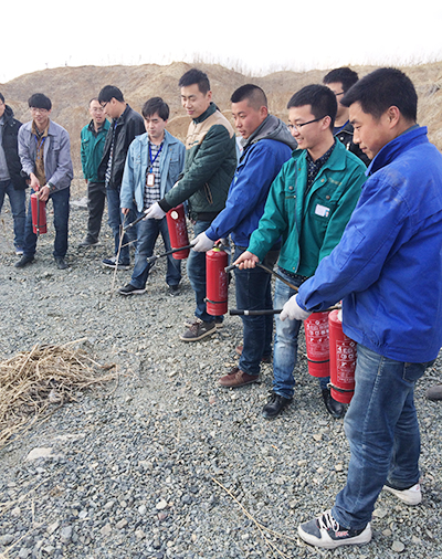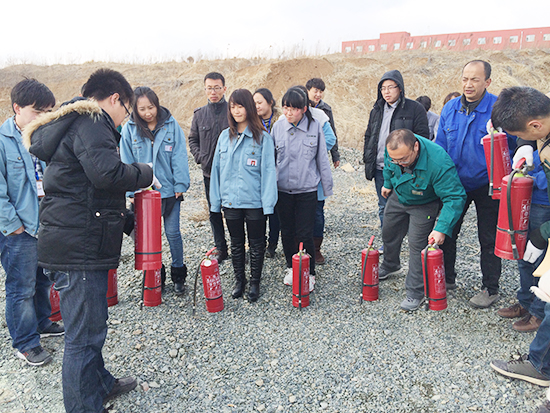 消防安全员曾川川首先做了灭火器的使用方法讲解,他强调,灭火器使用主要有五个环节,即:拔、握、瞄、压、扫。讲解过后,员工们开始一一操作并熟悉了相关使用方法。