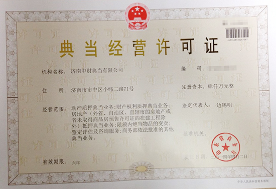 喜讯:乐鱼网页版登录入口金融广角(济南)喜获《典当经营许可证》